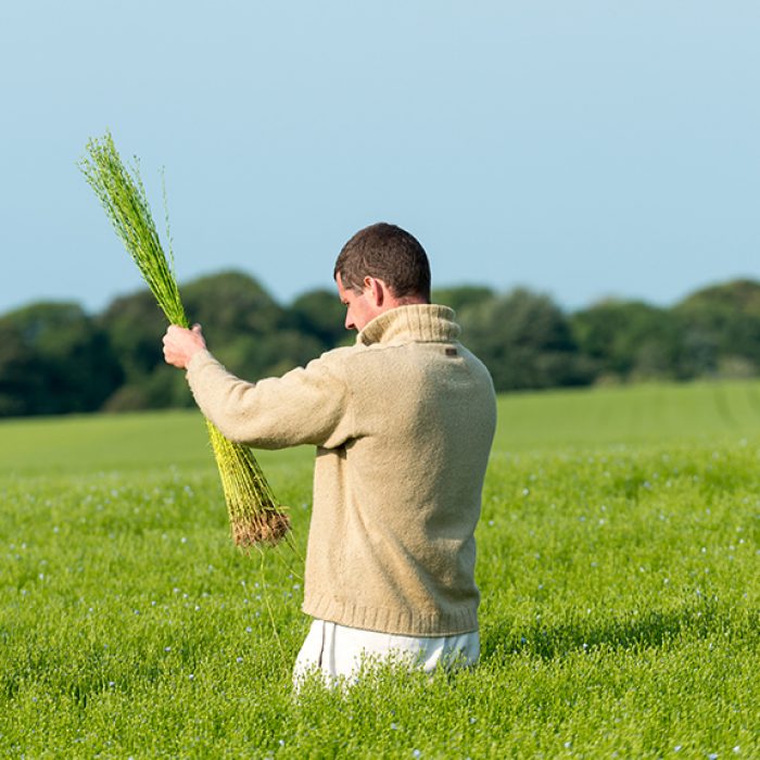 Fine European linen is a luxurious textile due to its labor-intense process. From the fields of Normandy, France the flax is woven into fine linen by artisans in Italy. Tailored in Poland and designed in Germany.